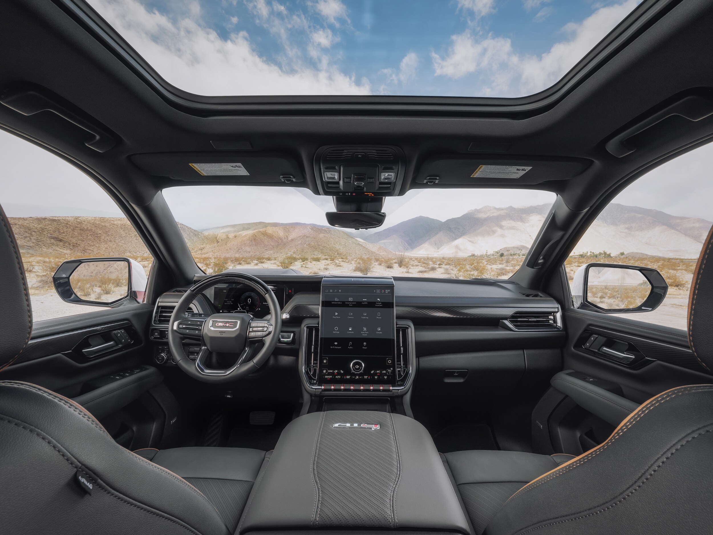 With premium materials, exquisite craftsmanship, and attention to detail, the Yukon's cabin is designed to provide an unparalleled level of comfort and convenience. The available heated and ventilated front seats, tri-zone automatic climate control, and panoramic sunroof create a serene and inviting atmosphere, making every journey a truly enjoyable experience.